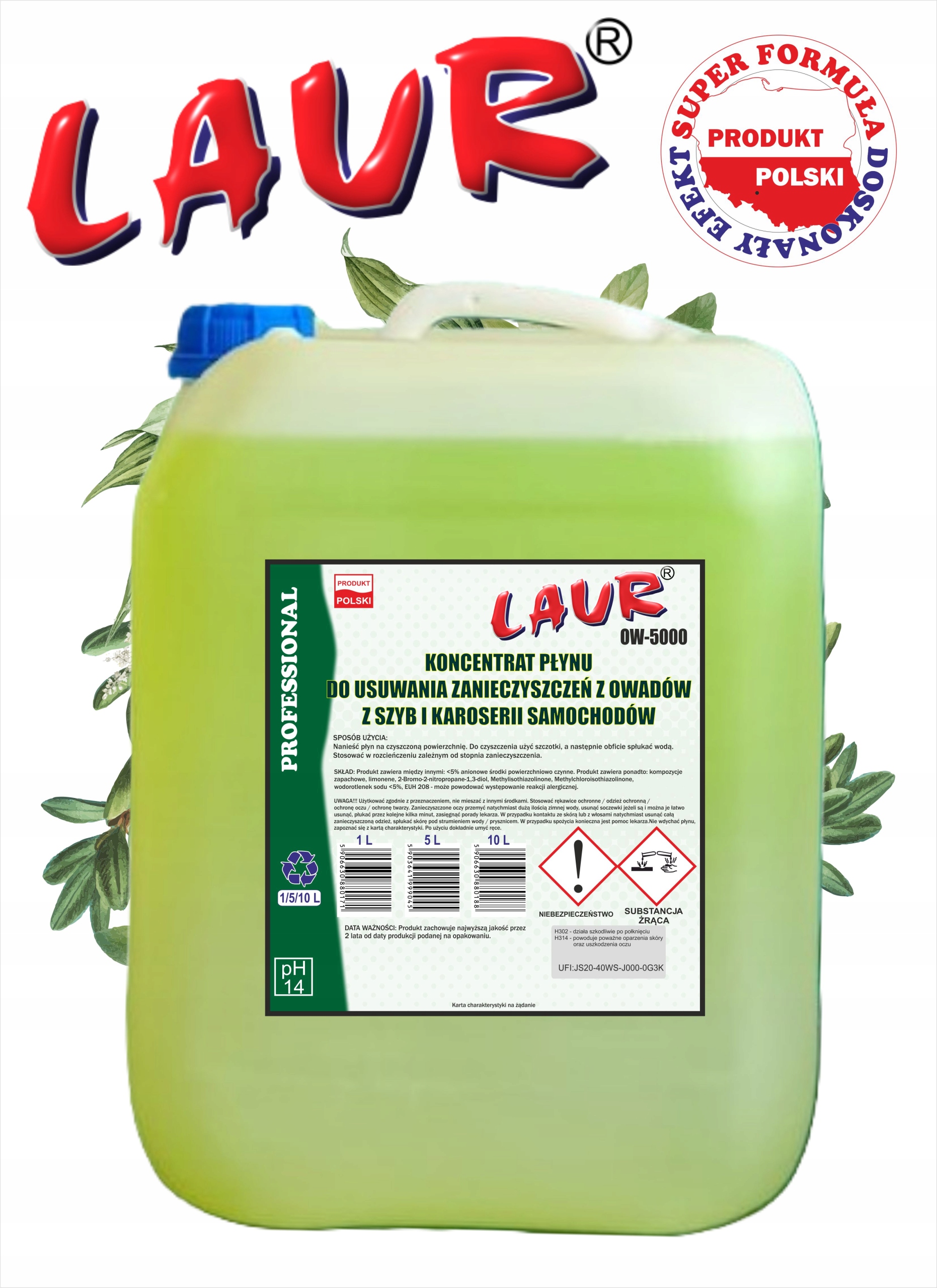 Профессиональный концентрат жидкости для удаления насекомых из стекла и тела - 10L laur