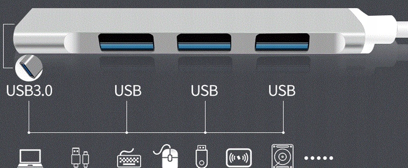 КОНЦЕНТРАТОР 4x USB-A АДАПТЕР СПЛІТТЕР ТОНКИЙ ПОРТ РЕПЛІКАТОР USB 3.0