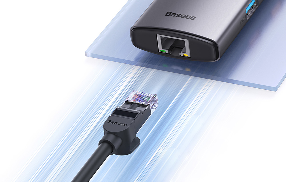 Хаб Baseus оснащен портом RJ45, поддерживающим передачу сигнала на скорости 1000/100/10 Мбит/с. В результате вы можете наслаждаться быстрым, стабильным и удобным соединением. Более того, он поддерживает протокол быстрой зарядки PD 100 Вт, который позволит мгновенно возобновить заряд энергии таких устройств, как смартфон, планшет или ноутбук.