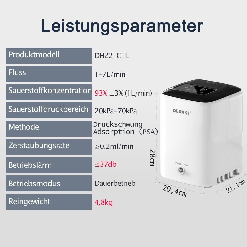 【Стандартные аксессуары и сервис】 1 X Dedakj Кислородное устройство, 1 x -диктофонский ингалятор кислорода, 1 x кислород для носа, 1 x кислородного шланга 3 м, 1 x пульт дистанционного управления, 1 x сетевой кабель.