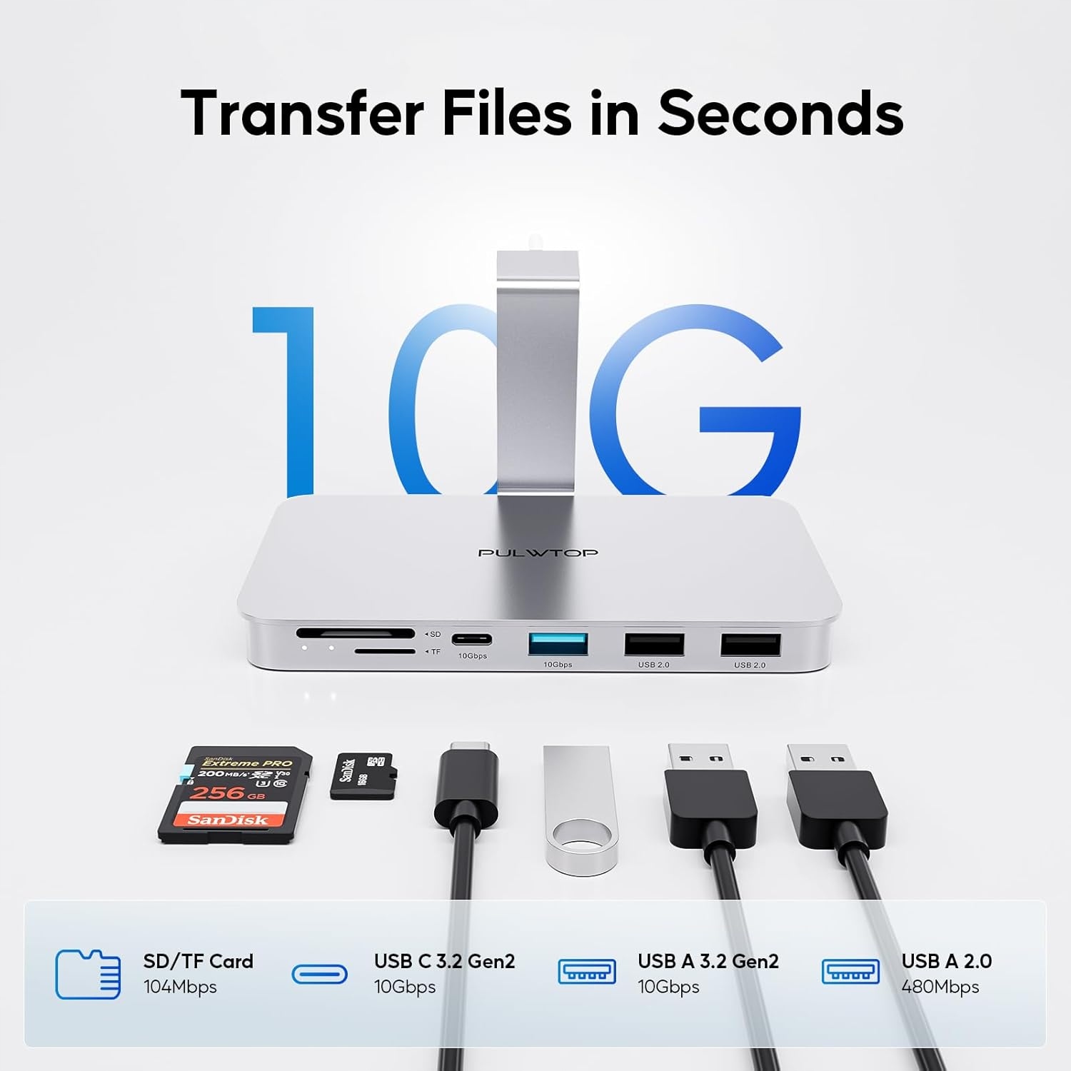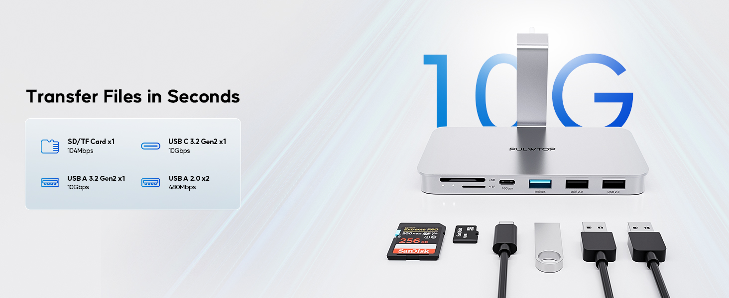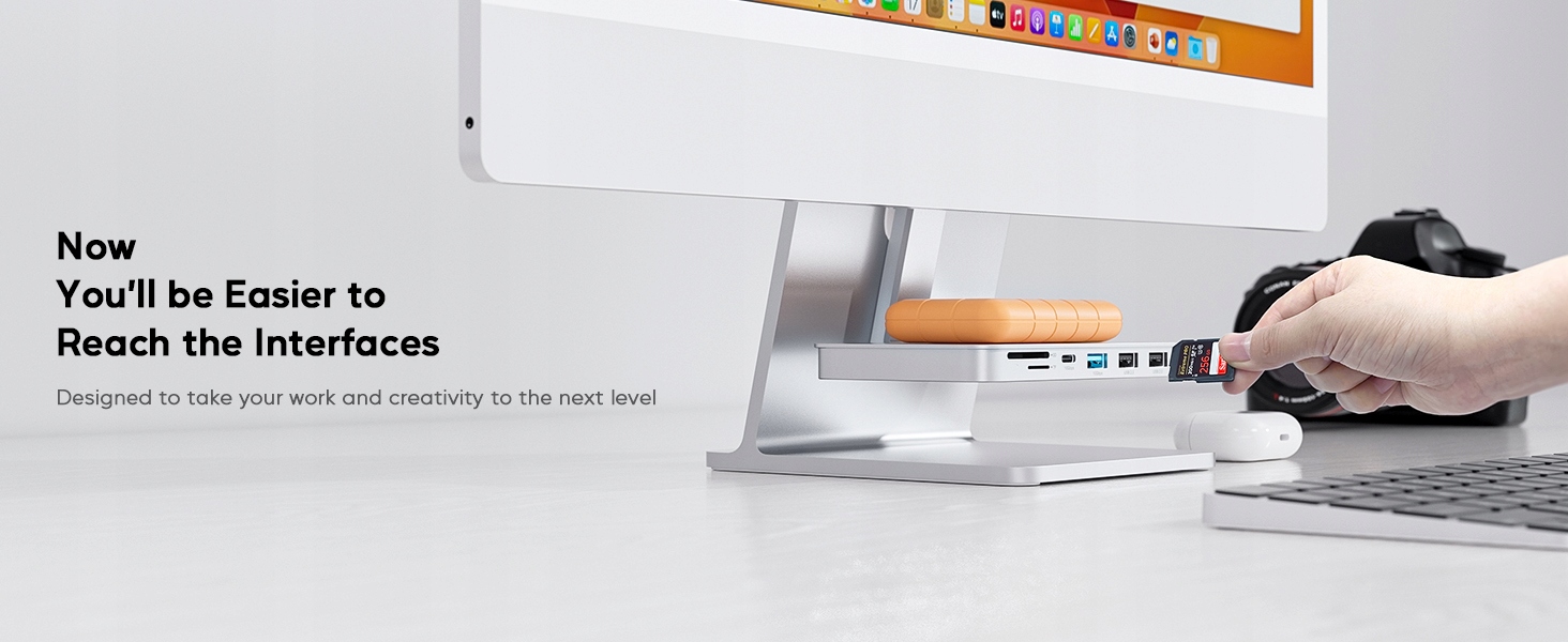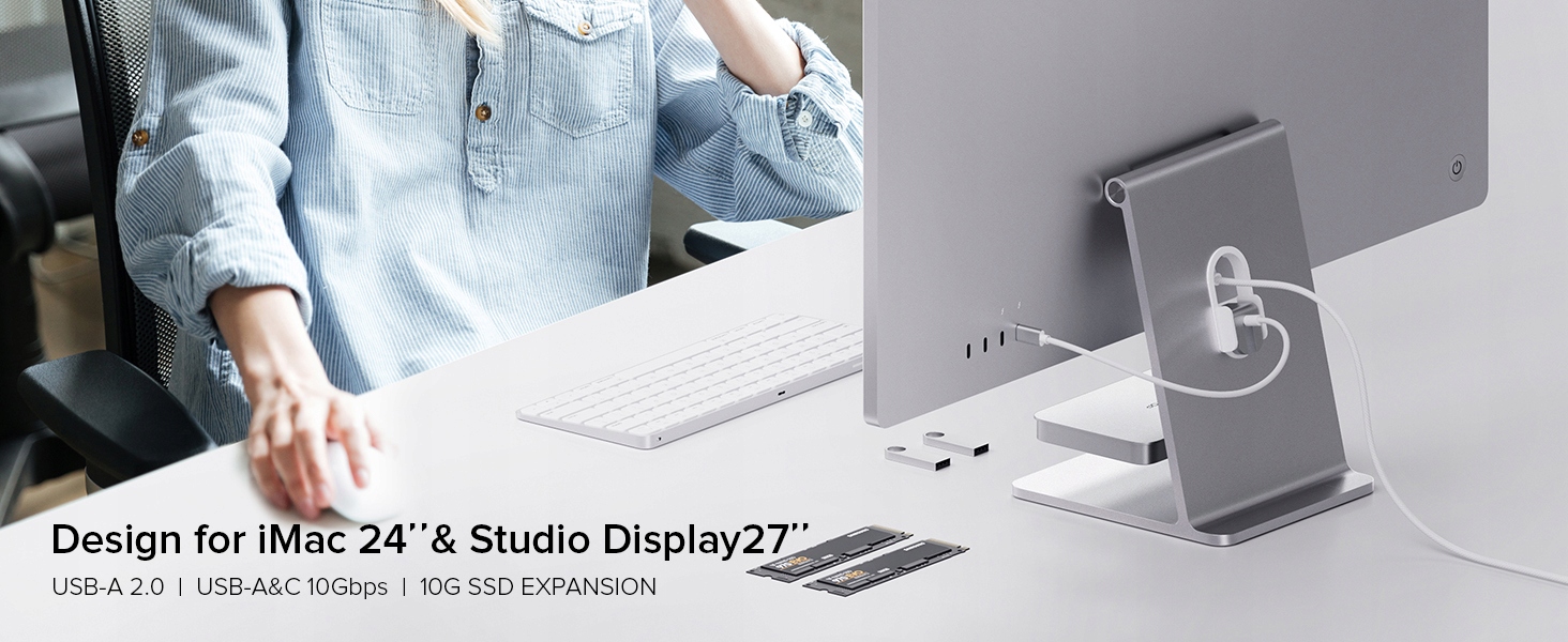 - HUB USB C 6 in 1 : IMAC 24 "accessories support 6 USB data memory. X USB C 3.2 Gen2 10 Gb/s, 1 x USB A 3.2 GEN2 10 Gb/s, 2 x USB A 2.0 480 Mbit/s, SD/TF card reader and 1 x M.2 NVME and SATA SSD DOCKing station The USB C docking station supports Одновременное чтение и запись SD/TF. -Регулируемый стенд и адаптер для сборки Веса). Совет: он не совместим с IMAC 2020 и более ранними версиями и Pro Display xdr