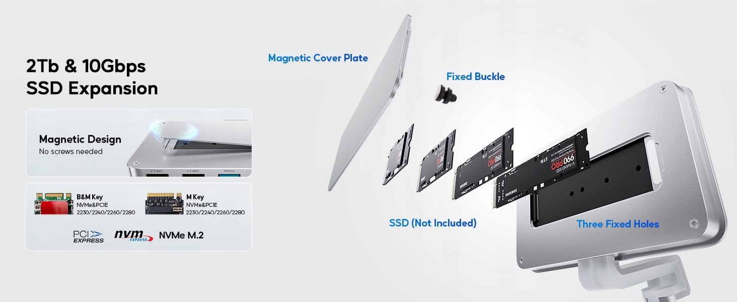 - nvme Housing и SATA SSD - NVME SSD Reader, совместимый с M.2 NVME/SATA PCIE M, ключ PCIE B & M SSD. USB C 3.2 Gen 2 10 GBIT/S NVME, 6 Гбит/S SATA PCIE M-KEY (B+M KEY), DO NVME/SATA SSD 2242/2260/2280 (Примечание: NVME и SATA SSD не находятся в пределах сферы доставки). Этот USB C для IMAC M1 поддерживает жесткие диски до 4 ТБ (M.2 NVME или M.2 NVME SATA) и оснащен USB -кондиционерами для передачи данных до 2 ТБ.