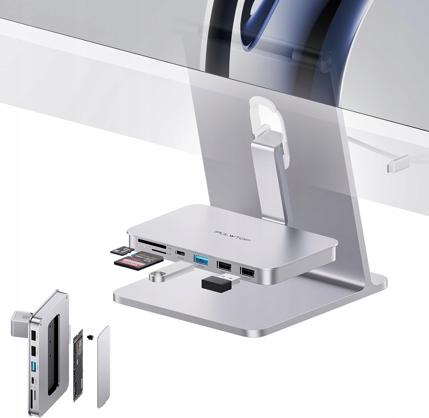 Концентратор Pulwtop для IMAC 24 "и отображение 27" USB-A/C SD/TF M.2 SSD Studio