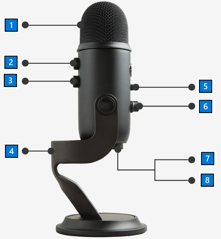 Yeti использует высококачественный аналого-цифровой преобразователь для передачи звука высочайшего качества непосредственно на ваш компьютер. Он оснащен усилителем для наушников с регулятором громкости, переключателем направления, кнопкой отключения звука и ручкой громкости на микрофонном входе [вход] и [выход]. Все размещено прямо на микрофоне.