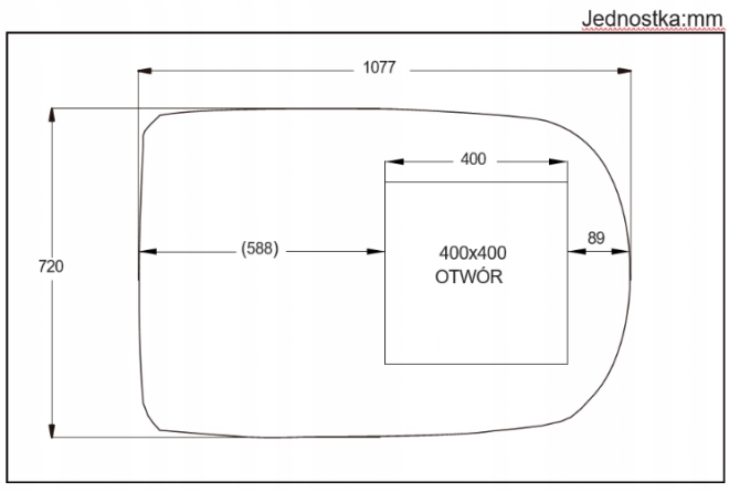 - Длина х высота x ширина внешней части: 720 x 283 x 1077 мм.
