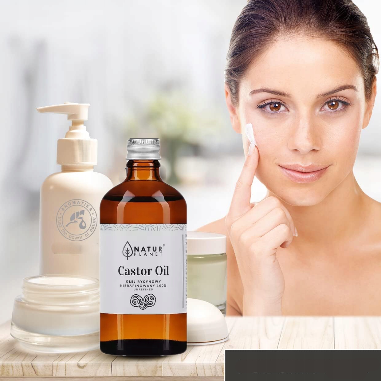Погрузите кисть во флакон с касторовым маслом и нанесите аппликатор на ресницы, брови, ногти и губы.