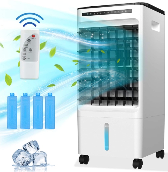 Портативный кондиционер Icy Air RFS-18R, 3 режима, таймер на 7 часов, дистанционное управление, 65 Вт, резервуар для воды на 5 л с 4 лотками для льда для комнаты, офиса, кухни [класс энергопотребления A++]