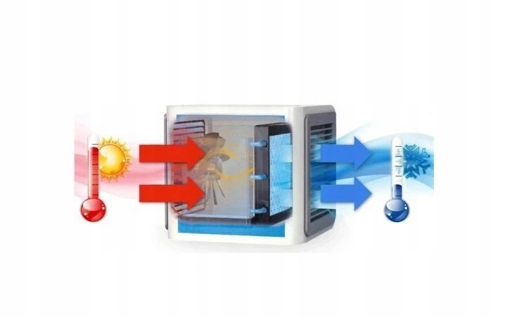 Портативный кондиционер, который сделает много жаркого дня более приятным. Вода -это хладагент благодаря использованию технологии гидроэлектростанции. Это самый дешевый и экологический способ борьбы с жарой. Кроме того, климатор оснащен встроенной светодиодной подсветкой, благодаря которой вы дадите вашему интерьеру уникальную атмосферу и очарование. В результате ток прохладного воздуха протекает через кондиционер внутри кабины. Лучшая производительность устройства получена в местах с высокой температурой и низким коэффициентом влажности