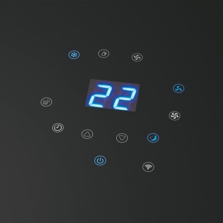 Портативный кондиционер оснащен встроенным Wi-Fi, который позволяет легко подключиться с помощью смартфона или планшета через бесплатное приложение. Беспроводное подключение делает управление кондиционером еще проще и позволяет управлять устройством из любой точки мира. Устройство имеет программируемый таймер, сенсорную панель и функцию голосового управления.