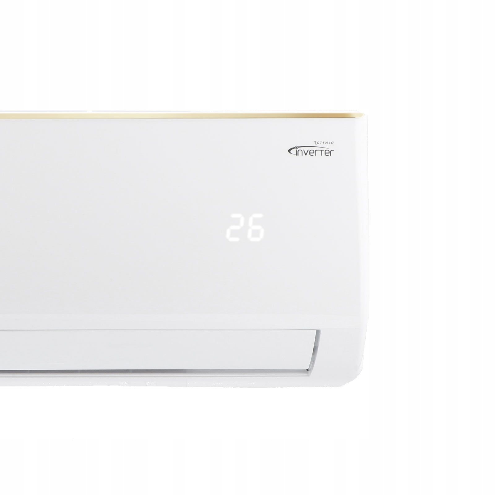 Белый блок кондиционера был сломлен с нежной, золотой линией. Современный дизайн RONI идеально гармонирует с каждой комнатой