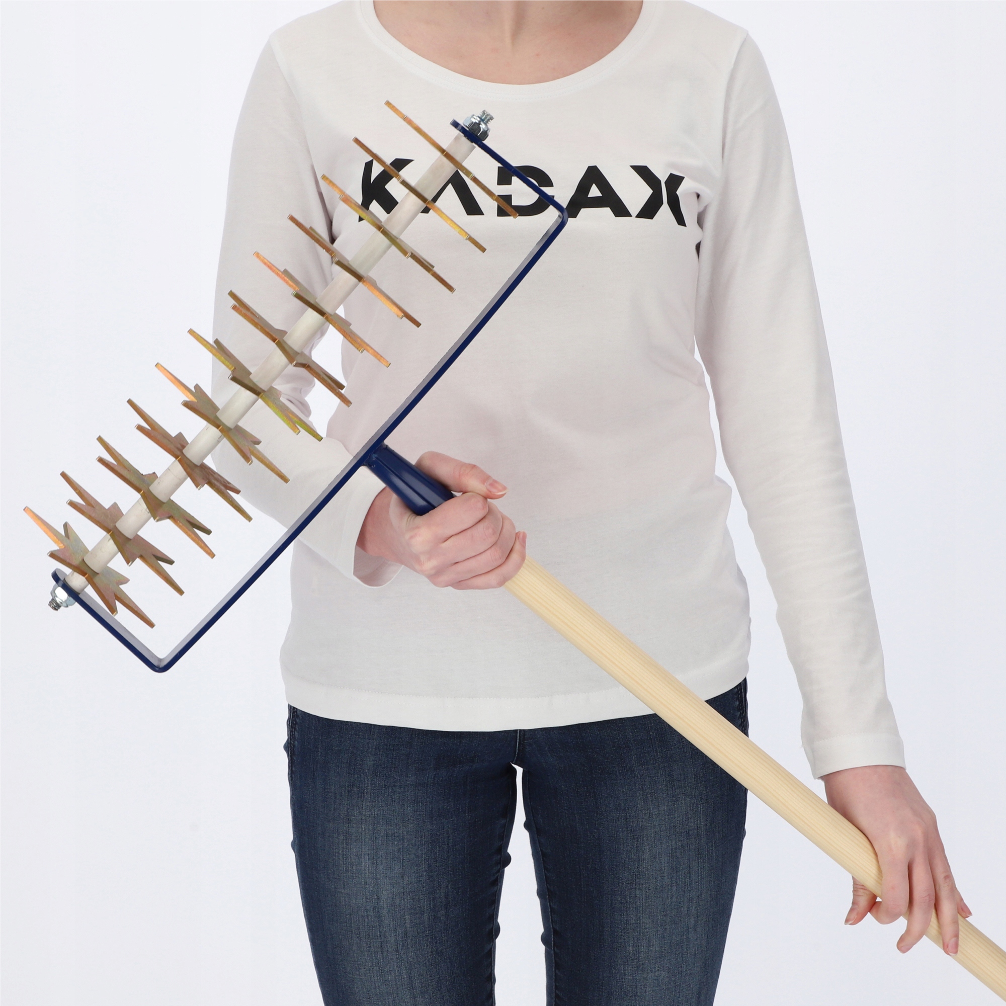 - Длинная деревянная ручка: кивок в спину — теперь не будете приходится слишком сильно наклоняться во время работы. А это предотвратит мышечные боли!