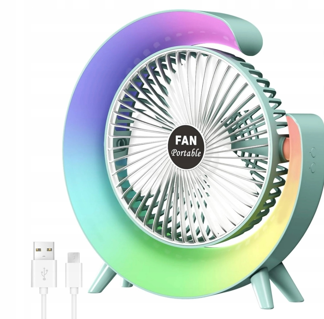 Универсальный настольный USB-вентилятор с регулируемой яркостью освещения — 3 скорости, угол наклона 180°, идеально подходит для дома, общежития и офиса