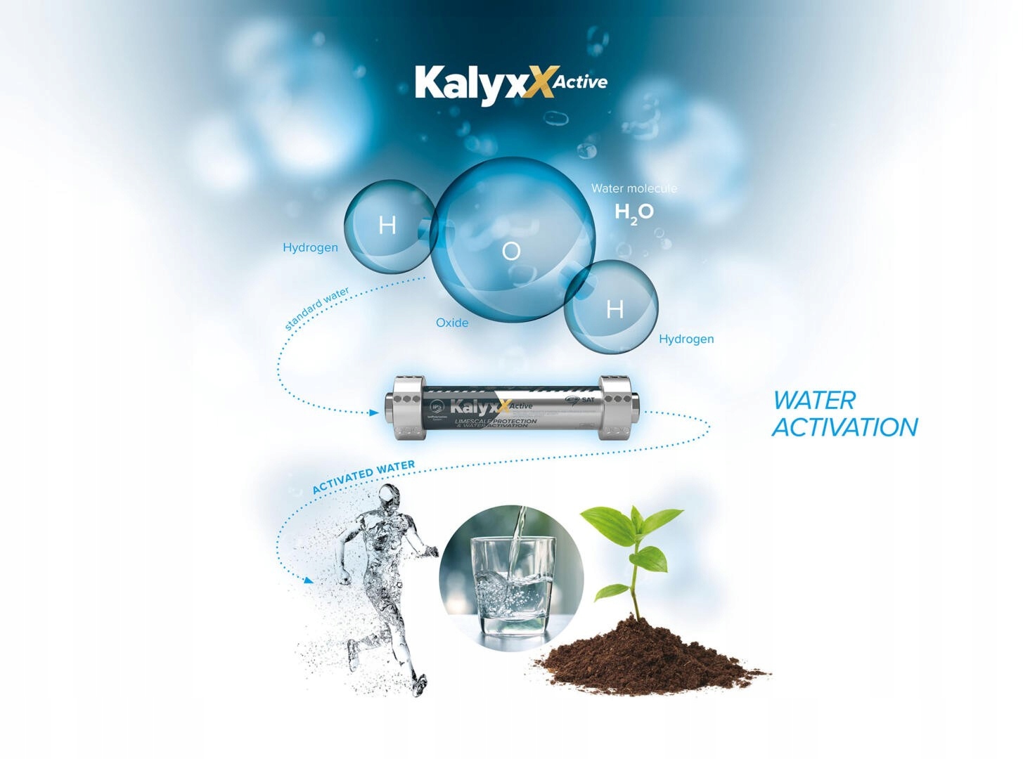 KalyxX Active – оригинальное вихревое устройство для очистки воды, которое изменяя свою структуру, создает уникальные свойства воды. Он построен на нашей системе ионной поляризации, дополненной магнитами, которые улучшают работу устройства. Для устройств без магнита определен сертифицированный КПД 76%. В случае с KalyxX Active минимальный КПД устройства установлен на уровне 90%, что является уникальным результатом в международном масштабе для устройств такого типа. KalyxX Active использует энергию водоворота, а электроды генерируют гальванический потенциал до 4,5 В.