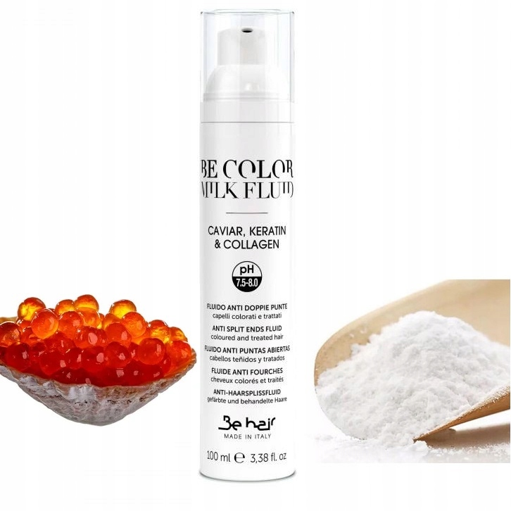 fluid икры, кератин и коллаген , предлагающие роскошную помощь о окрашенных волосах и прохождении химической обработки. плотно закрыт. Продукт предотвращает вьющиеся и хранение пряди . Регулярное использование жидкости помогает защитить кончики от расщепления, придавая волосам мягкость, и громкость - без влияния нагрузки.