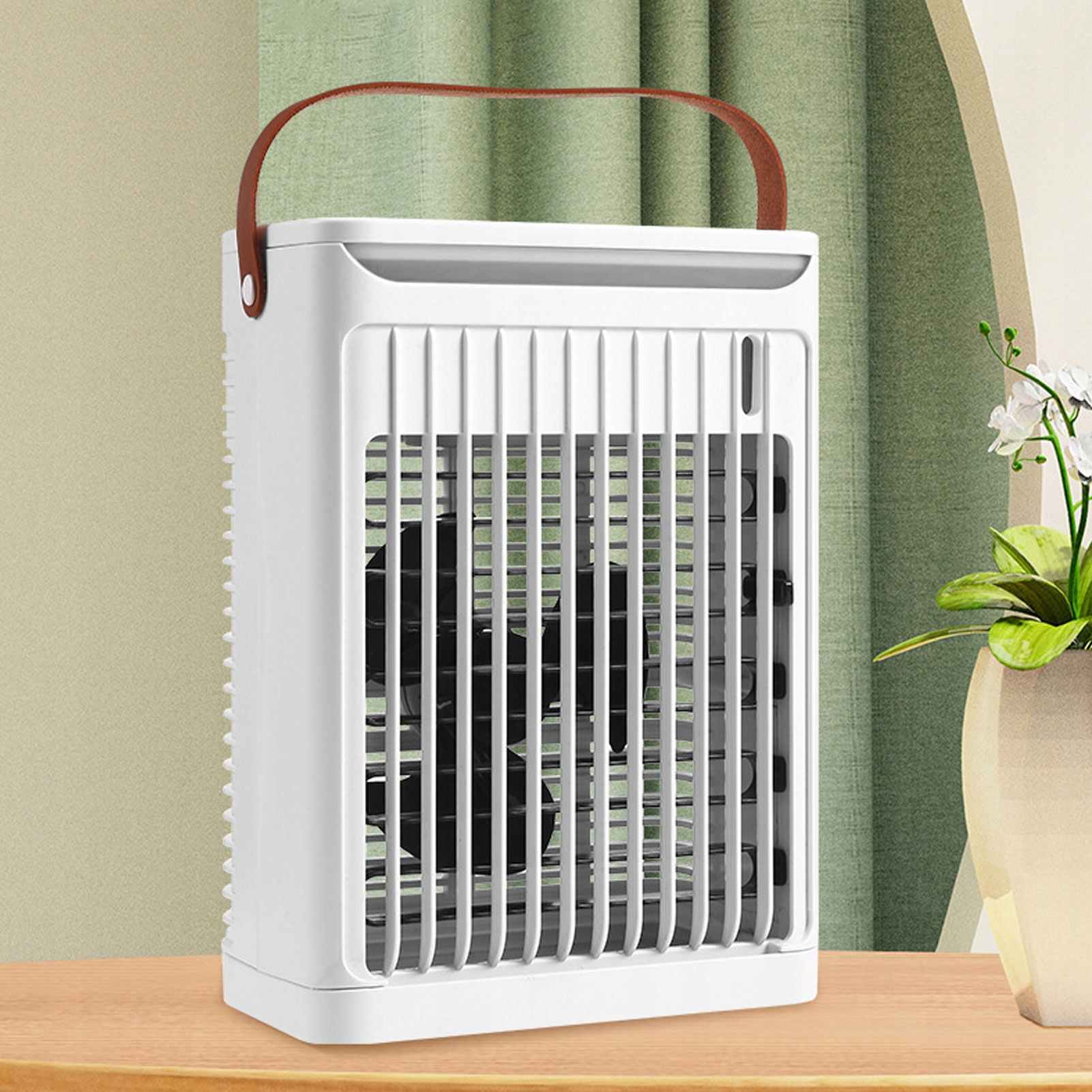 1. Эффективное охлаждение и туман: этот портативный кондиционер оснащен мощным двигателем и уникальными воздушными каналами, предлагающими 2 режима охлаждающего тумана для снижения температуры окружающей среды на 7–10 ℃. Подает мощный прохладный воздух всего за 2 секунды, повышая комфорт в домах, на кухне, в спальнях, офисах, на открытом воздухе и в кемпинге. Верхняя часть позволяет добавлять холодную воду или лед для лучшего охлаждения.