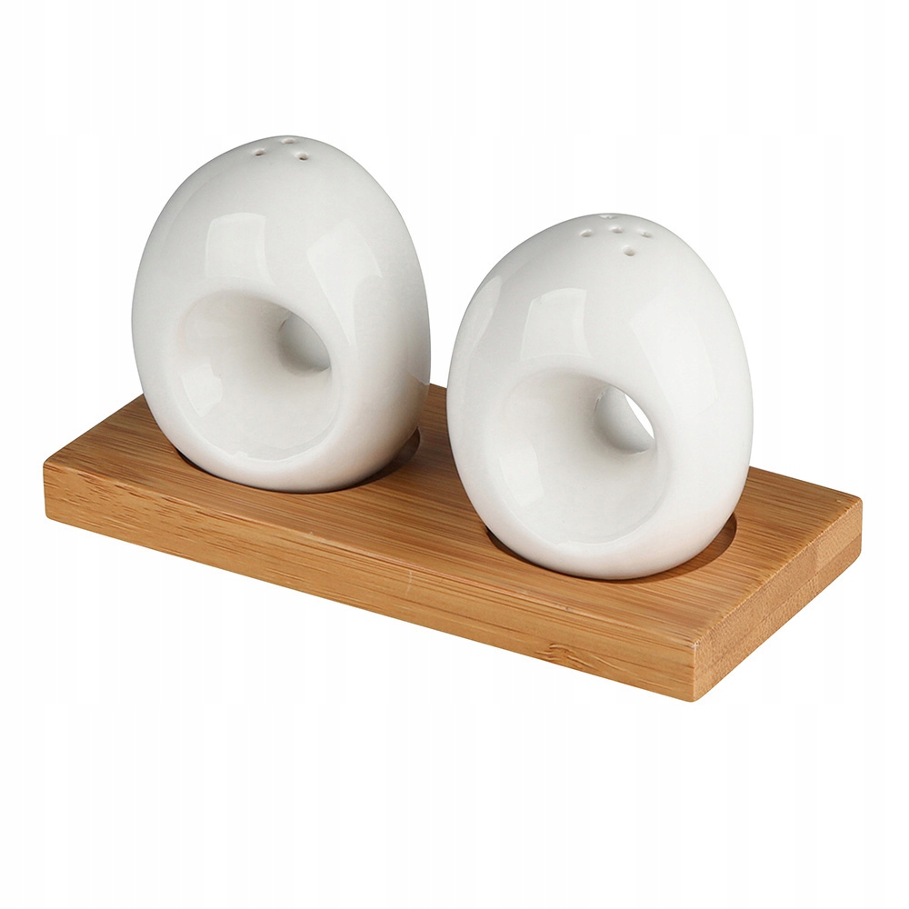 Солонки и перечницы стоят на деревянной основе, имитирующей бамбук. Элегантные специи добавят стиля современному интерьеру.