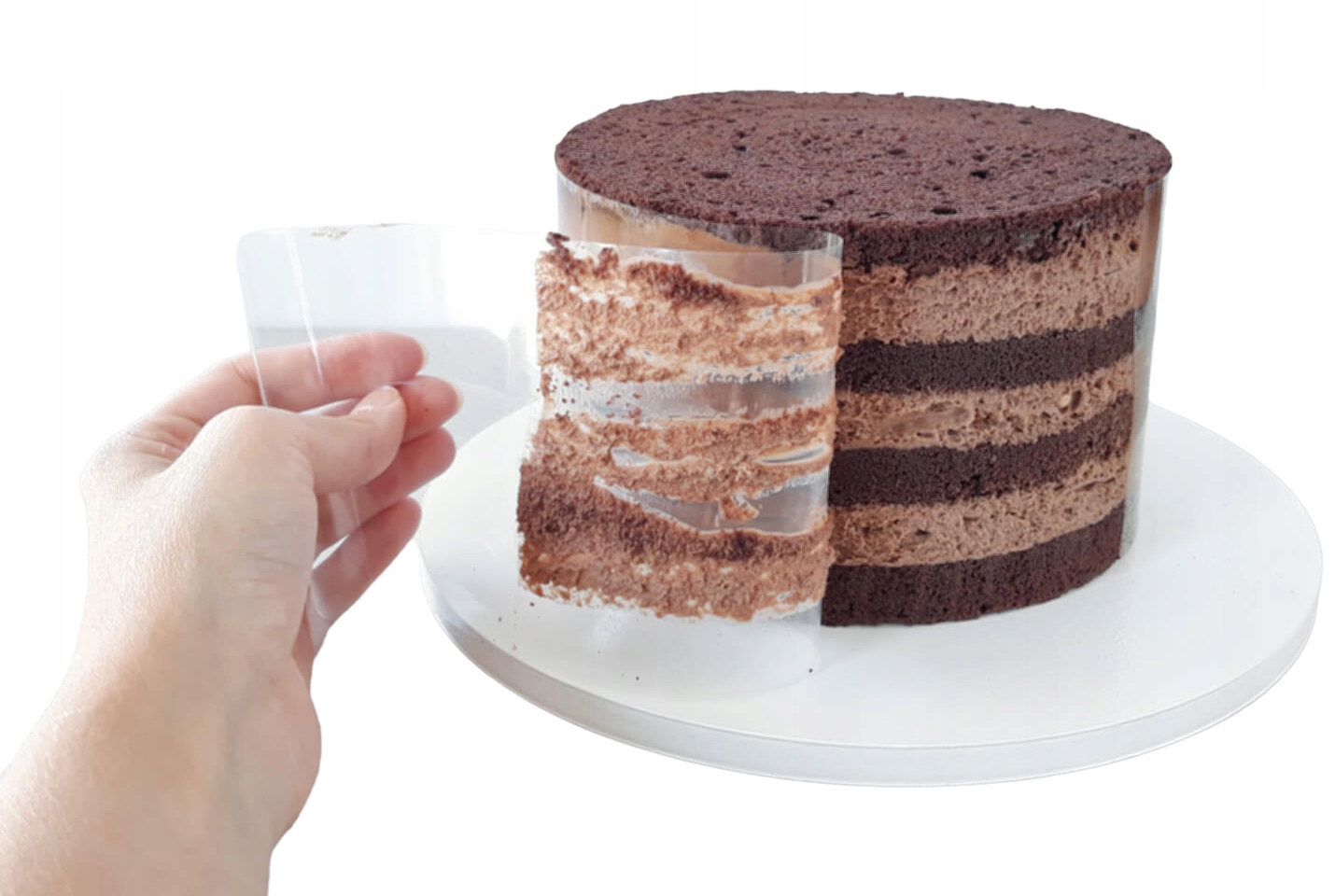 Защищает бока монопорций и банкеток, десертов, тортов холодного приготовления в металлических бортиках и пластиковых формах.