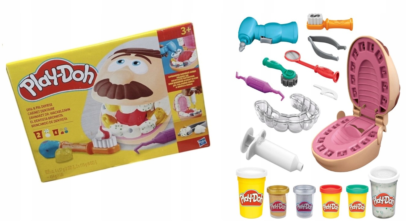 Специальный пластилин с разноцветными частицами золотого и серебряного цветов позволяет создавать требующие лечения зубы, ортодонтические брекеты и пломбы, а благодаря новой дрели без батареек можно начинать сверлить! Теперь вам не придется формировать каждый зуб отдельно — специальная накладка поможет сделать весь ряд за один раз!