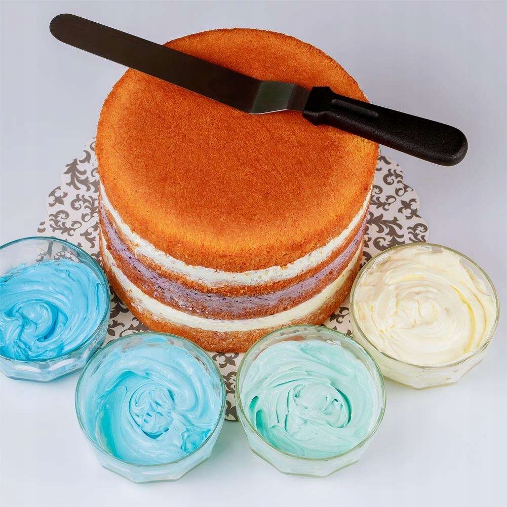 Широкое лезвие позволяет точно наносить и разглаживать массу по поверхности торта.