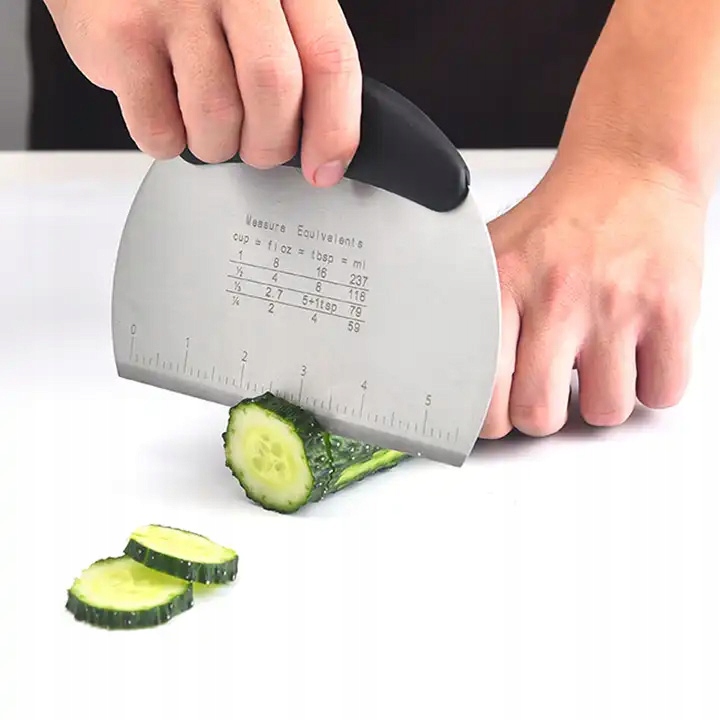 Лопатка кондитерская для разглаживания смеси, нанесения крема и украшения тортов. Он имеет многофункциональное использование. Его также можно использовать при нарезке овощей или теста, например, для пельменей или макарон. Благодаря этому мы можем легко переносить нарезанные продукты. На лезвии имеется мерный стаканчик для удобства измерения.