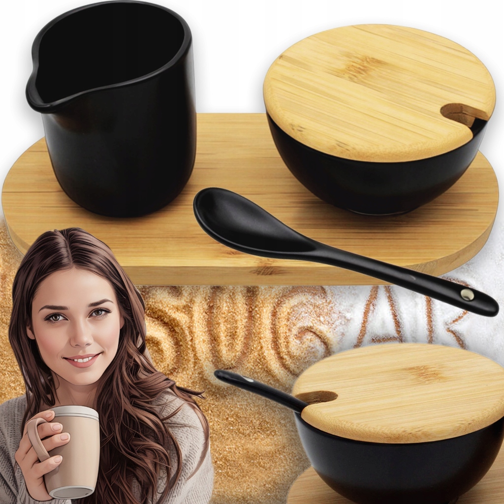 КОНДИТЕРСЬКА З ЧАЙНОЮ ЛОЖКОЮ МОЛОЧНИКА ЧОРНА ФАРФОРОВА БАМБУКОВА ПІДСТАВКА