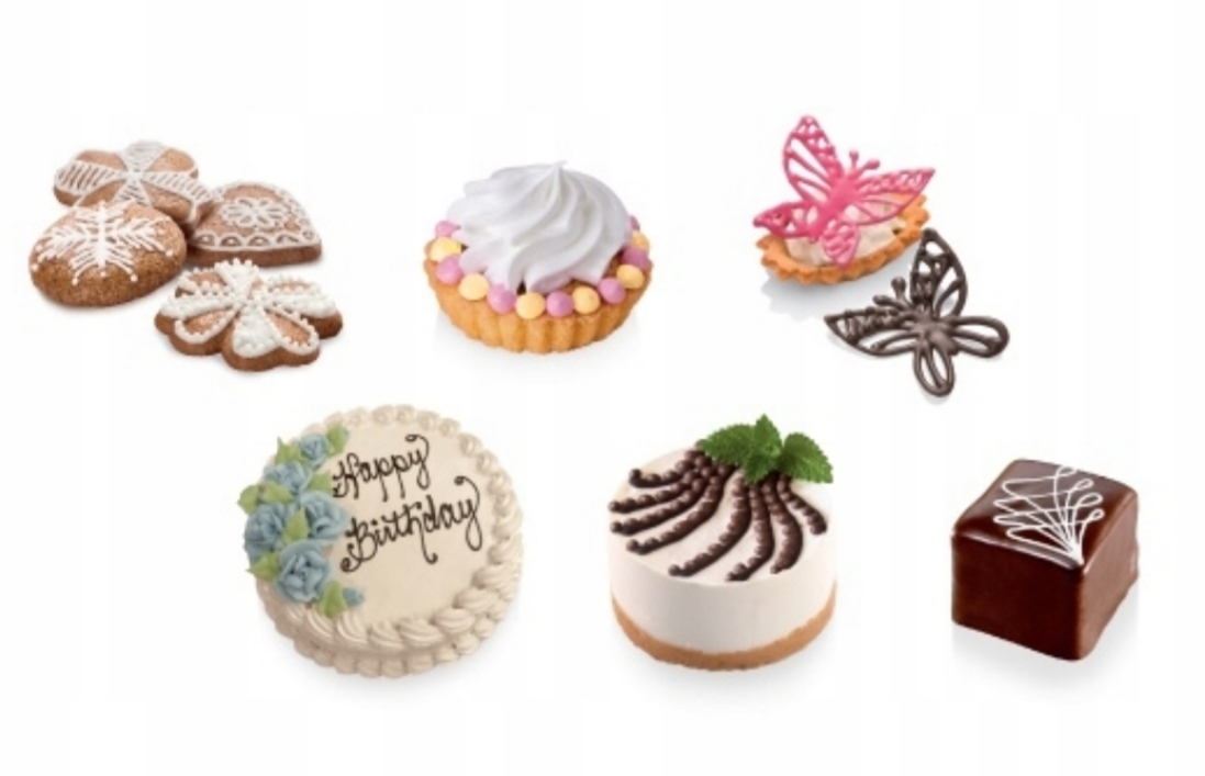 Идеально подходит для украшения блюд декоративным яичным белком, творогом, масляно-шоколадным кремом, растопленным шоколадом, взбитыми сливками.