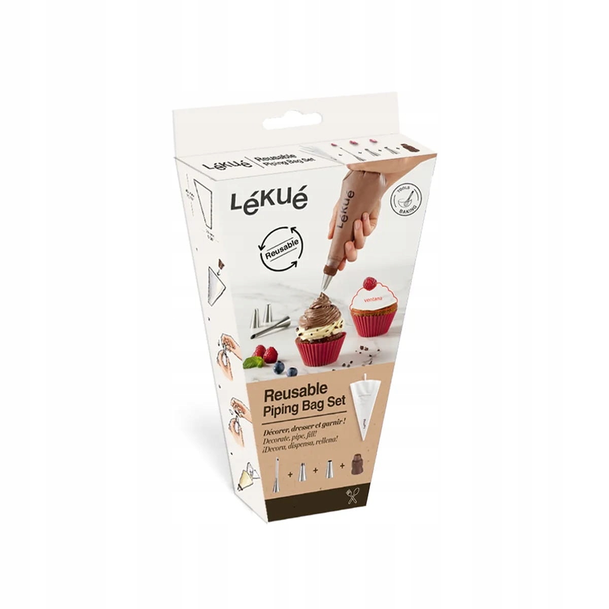 - 1 многоразовый кондитерский мешок длиной 40 см, 1 адаптер, 3 насадки для украшения