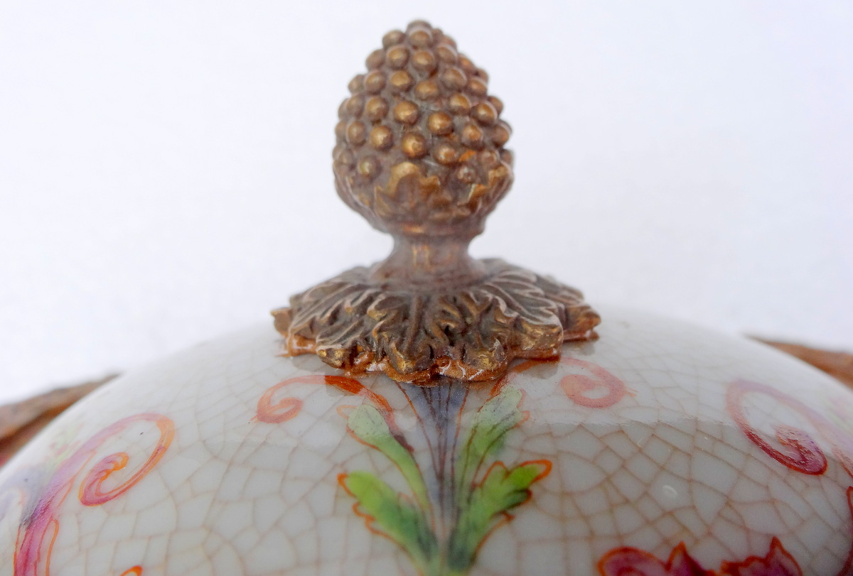 Фарфоровая шкатулка-сахарница, выполненная в современном, старинном стиле (реплика фарфора модерна).