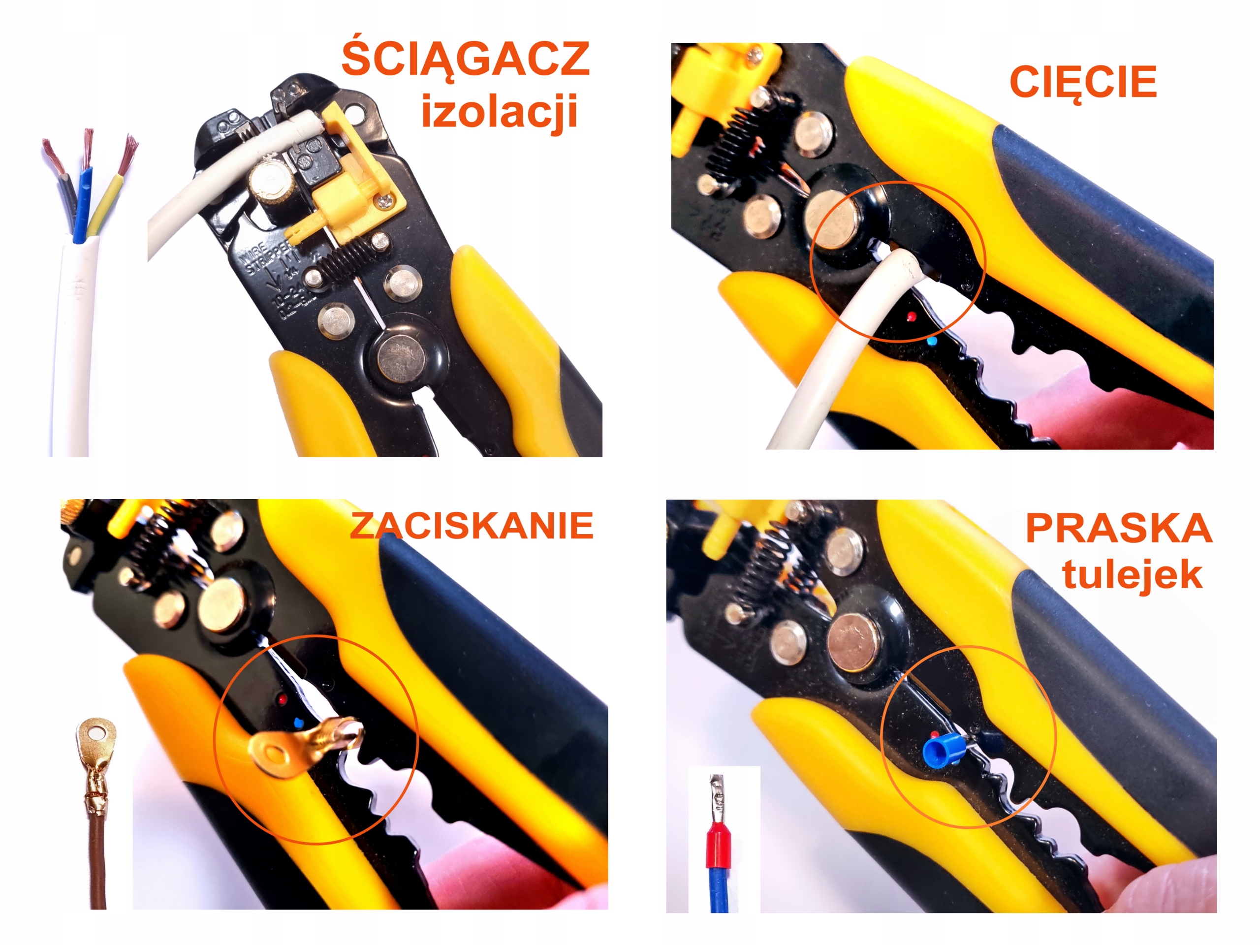 ✅ Щипцы для зачистки изоляции кабеля — это практичный инструмент, который позволяет быстро и точно снимать изоляцию с плоских и круглых кабелей. Чтобы снять изоляцию, вставьте кабель в двойные зажимы, а затем затяните ручку. Устройство эффективно режет кабели и провода. Также позволяет обжимать кабельные гильзы и разъемы.