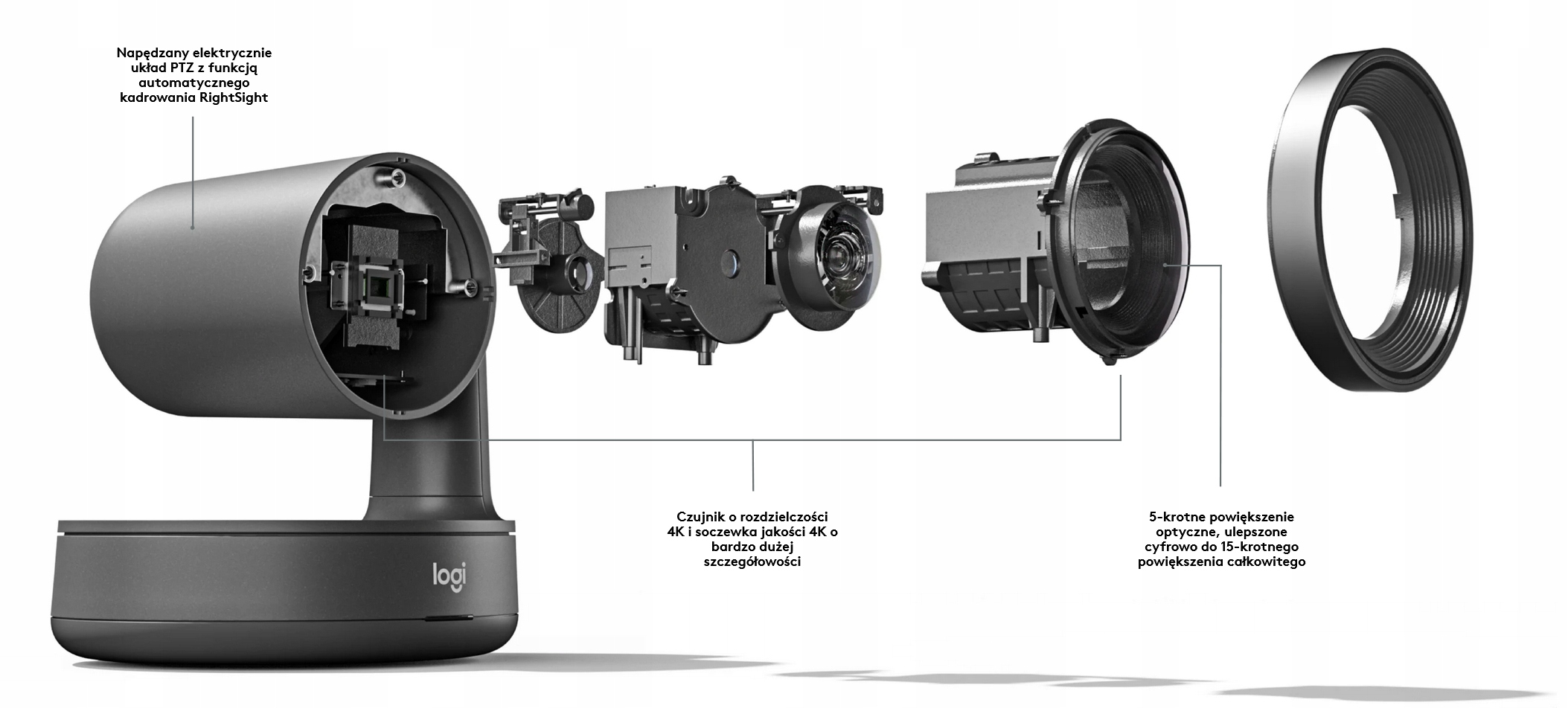 Благодаря системе обработки изображений Ultra-HD Rally гарантирует чрезвычайно четкое изображение, потрясающие цвета и невероятную оптическую точность при разрешении до 4K. Технология Logitech RightLight™ оптимизирует световой баланс, чтобы выделить лица и передать естественные тона кожи даже в условиях низкой освещенности или контрового света.