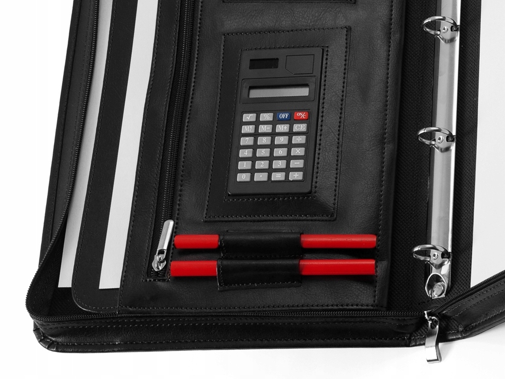 - внутри калькулятор, место для визиток и ручек (карандаши и листы бумаги в комплект не входят)
