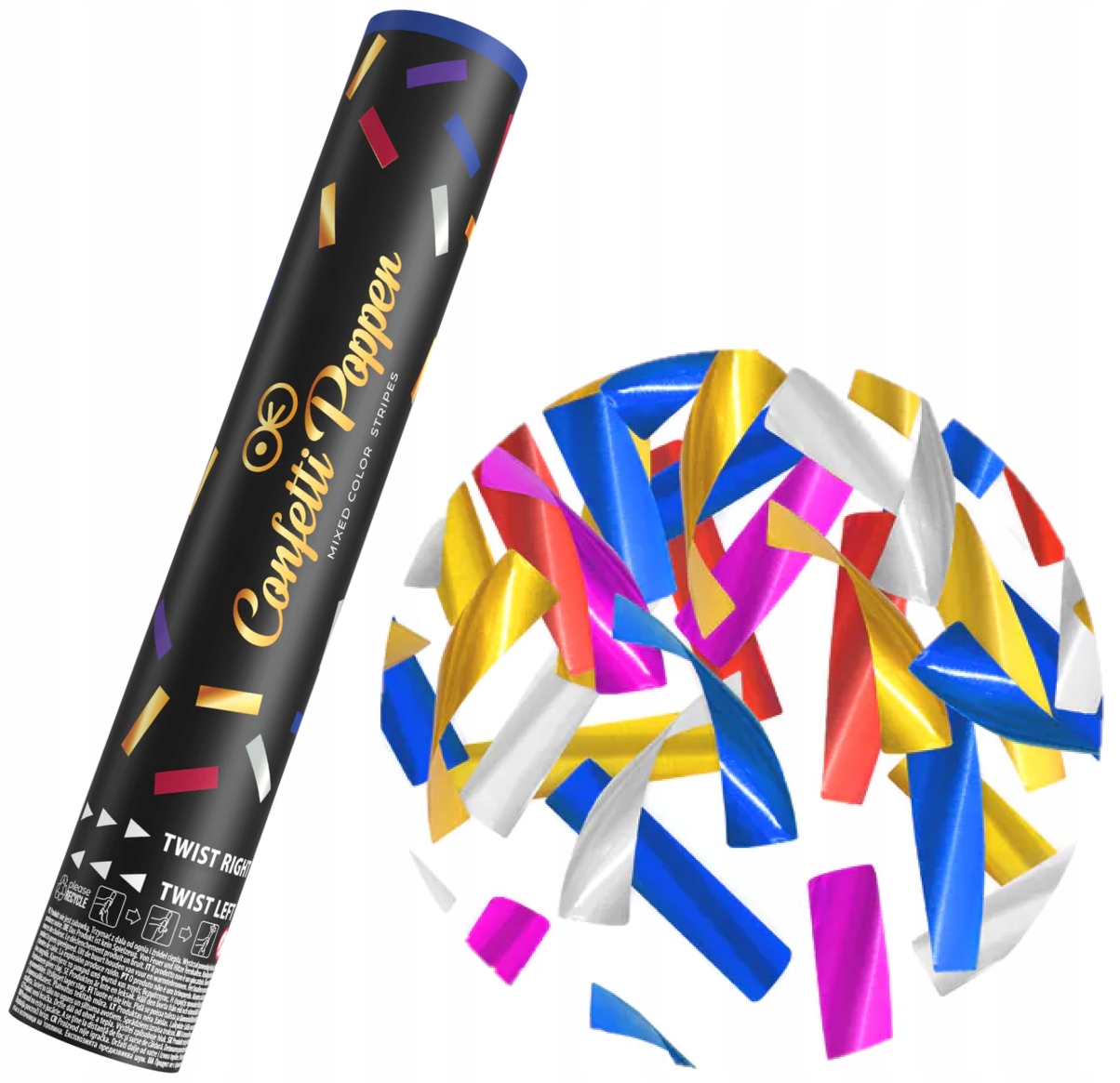 КОНФЕТІ ТРУБКА ЗЙОМКА КОЛЬОРОБНІ СМУЖКИ МІКС КОЛЬОРІВ ВЕСЕЛКА ДЕНЬ НАРОДЖЕННЯ 30см