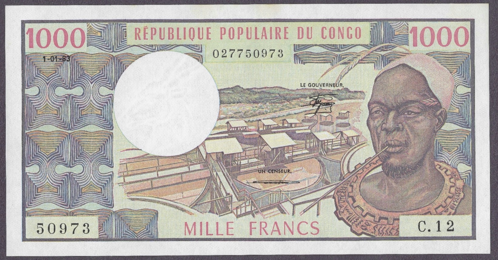 Kongo - 1000 franków 1983 (aUNC)