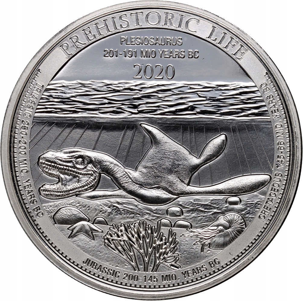 Конго, 20 франків 2020, плезіозавр, унція срібла