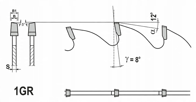 - оптимально подобранная геометрия зубьев 1GR8 (коническая подрезная фреза)