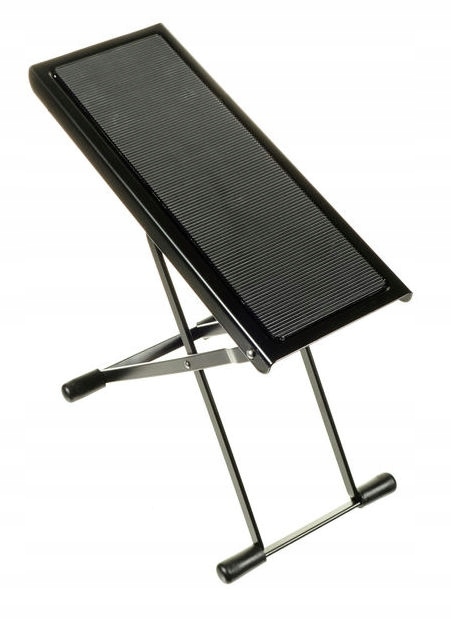 Подножка для гитариста с регулировкой высоты. Изготовлен из металла, черного цвета.