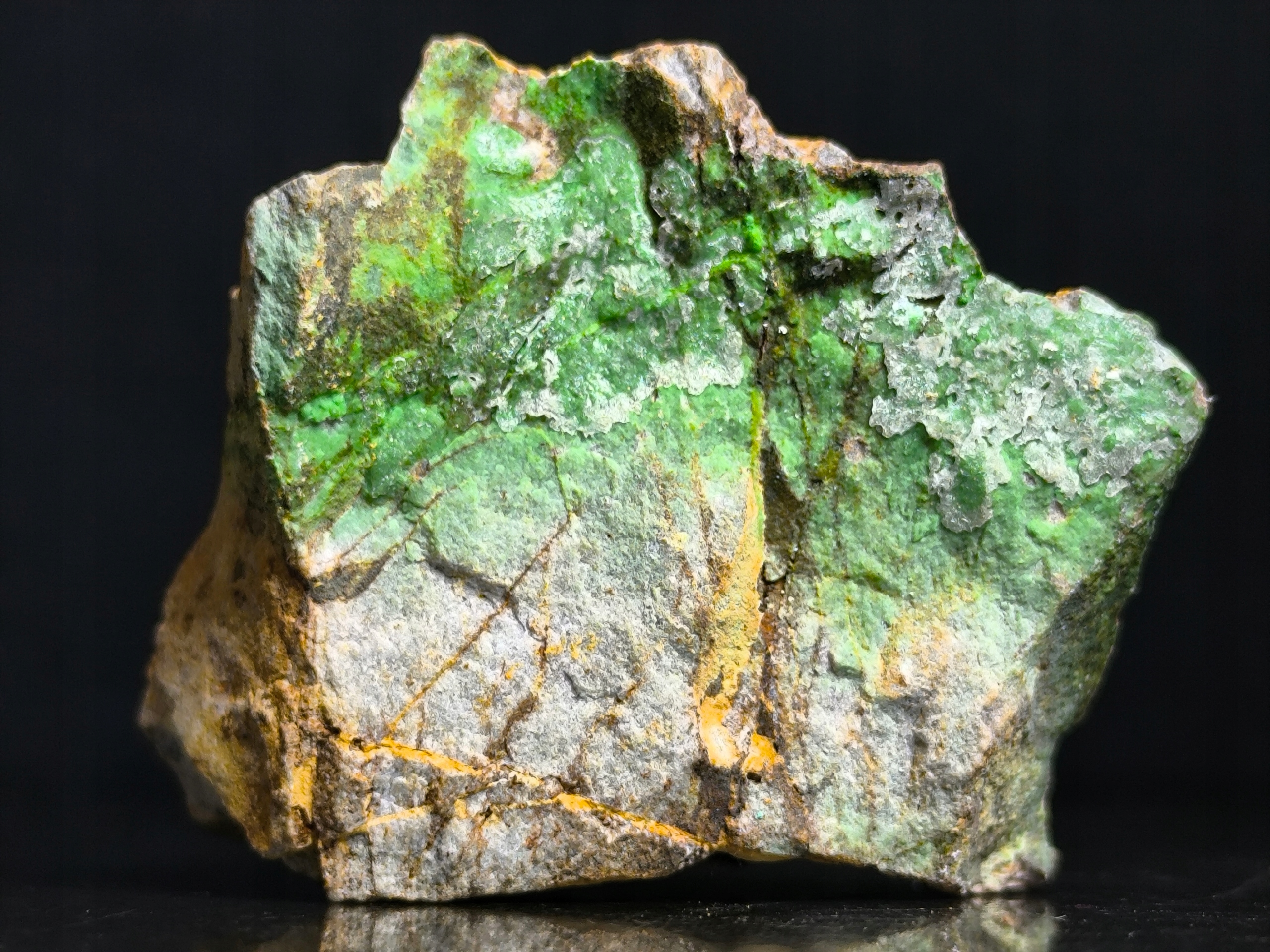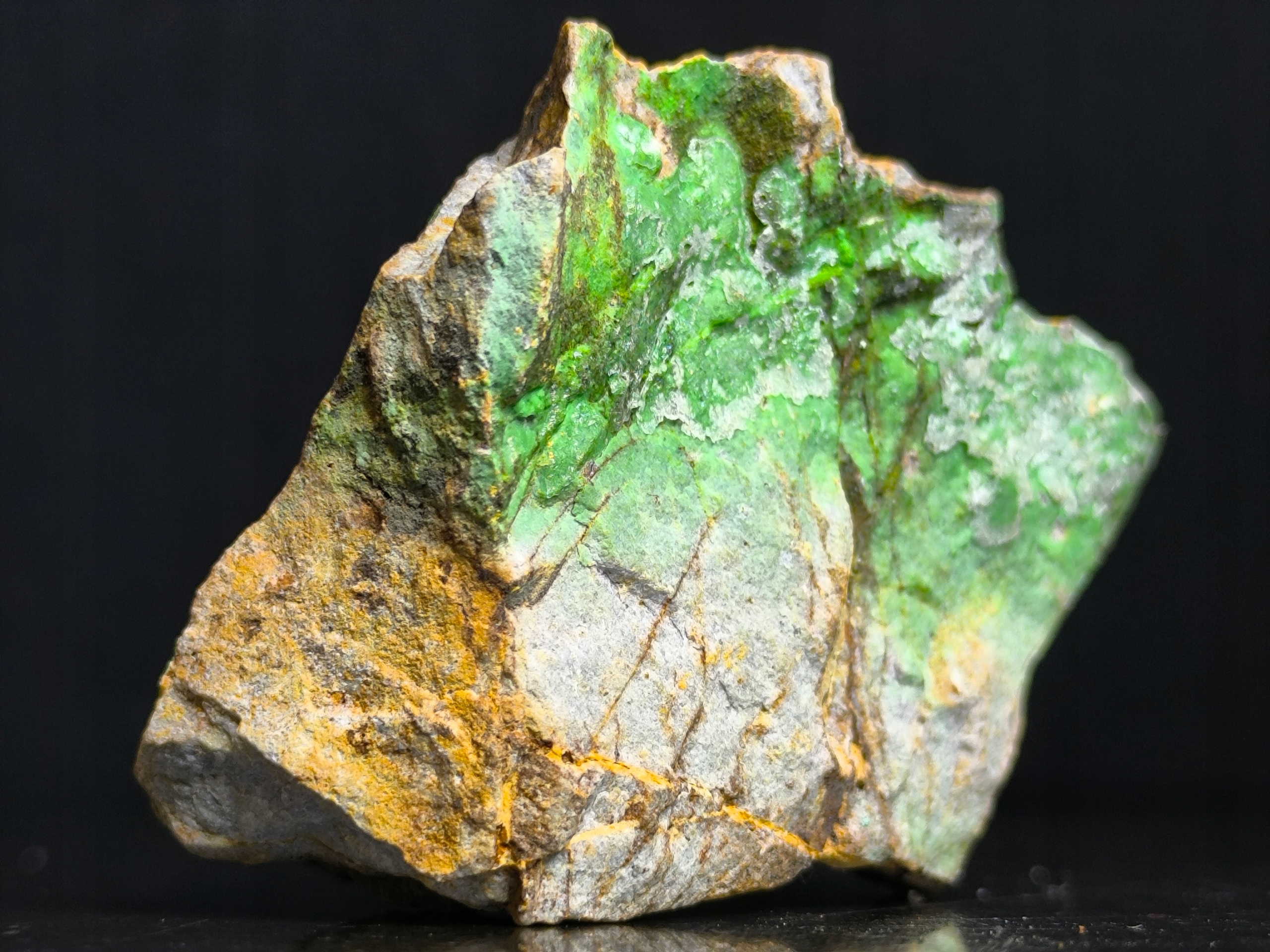 Конихальцит на матрице, природный зеленый минерал Испания.