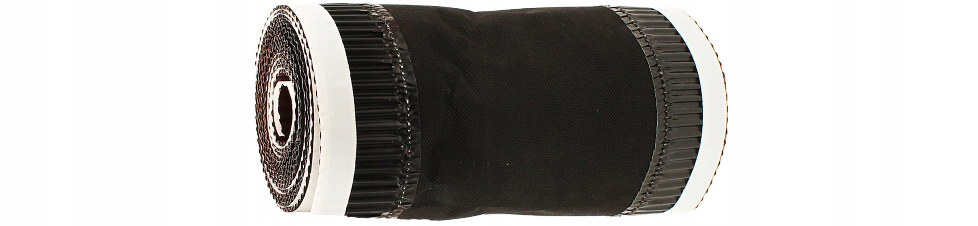 Паропроницаемая коньковая лента в виде двух полос гофрированного алюминия, соединенных между собой очень прочным геотекстилем, снизу отделанных самоклеящимися полосками из высококачественного бутила.