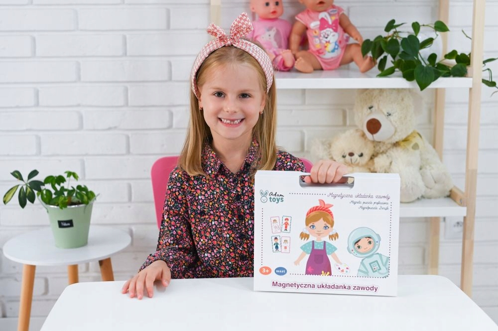 Профессии — развивающая головоломка, которая познакомит вашего ребенка с миром профессий. Благодаря ему ваш ребенок узнает названия профессий, орудия их труда, научится совмещать. Пазл состоит из 74 магнитных элементов одежды и аксессуаров, 12 красочных карточек с изображениями мальчиков и девочек и удобной коробки для хранения набора с доской для размещения карточек.