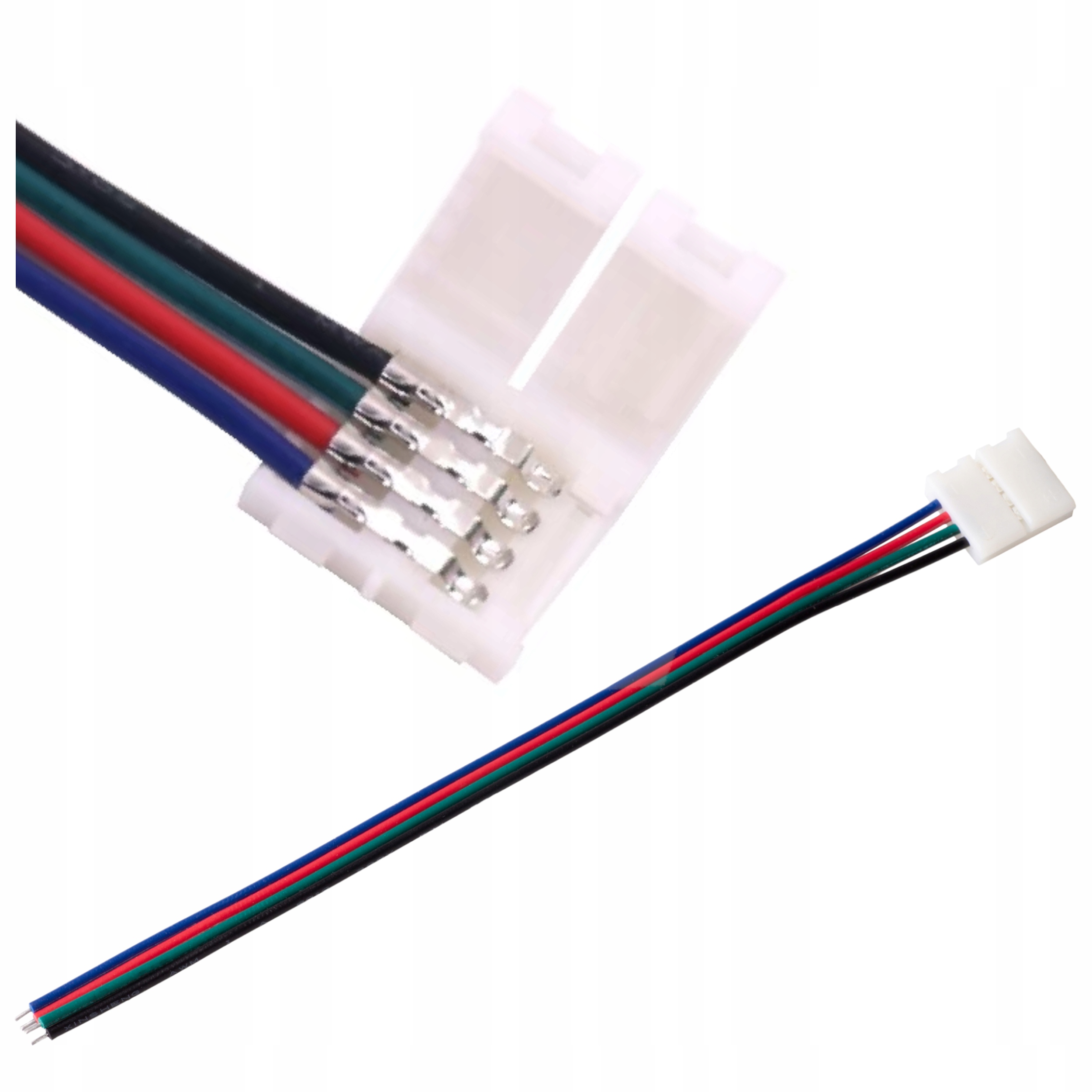 РАЗЪЕМ ДЛЯ ЦВЕТНЫХ СВЕТОДИОДНЫХ ПОЛОС RGB 10 мм ОДНОСТОРОННИЙ С 4-контактным кабелем длиной 15 см