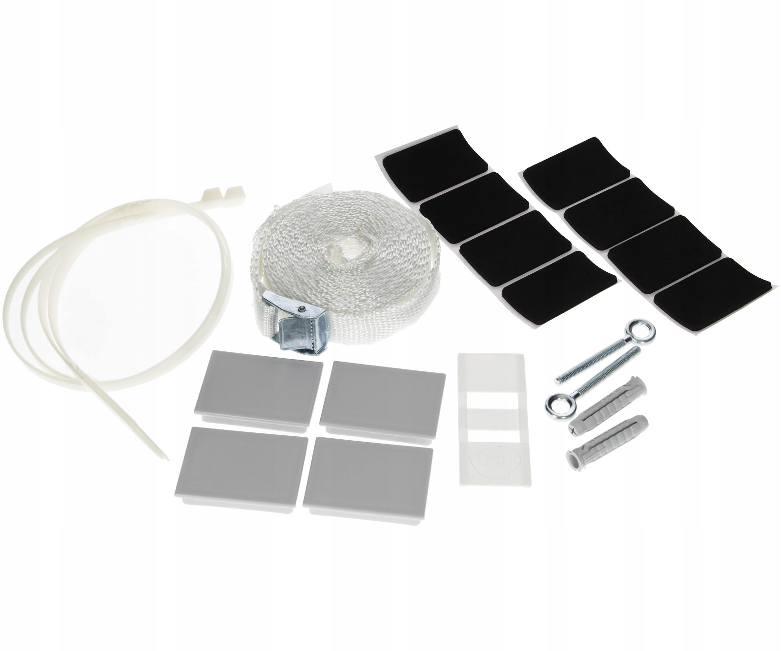 Благодаря материалам высочайшего качества комплект гарантирует максимальную безопасность. Набор очень прочный и долговечный. Удерживает устройства в безопасном положении и предотвращает их перемещение. Комплект оснащен ремнем безопасности для надежного крепления разъема. Крючки и штифты — это дополнительные аксессуары для крепления всей колонны к стене. Механизм безопасности гарантирует, что устройства стоят безопасно и устойчиво.