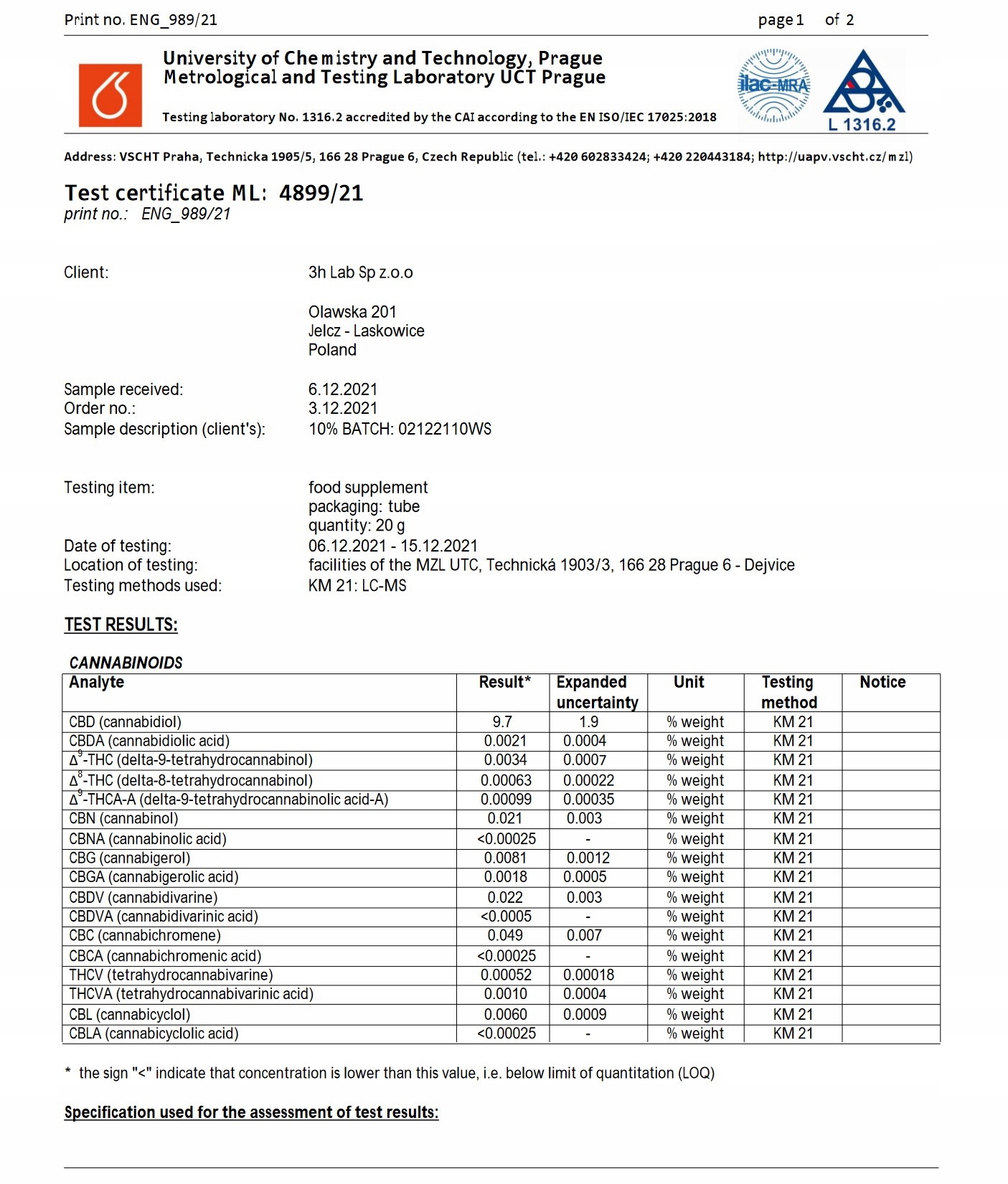 - лабораторная компания 3H LAB Sp z o.o. o.o.,,