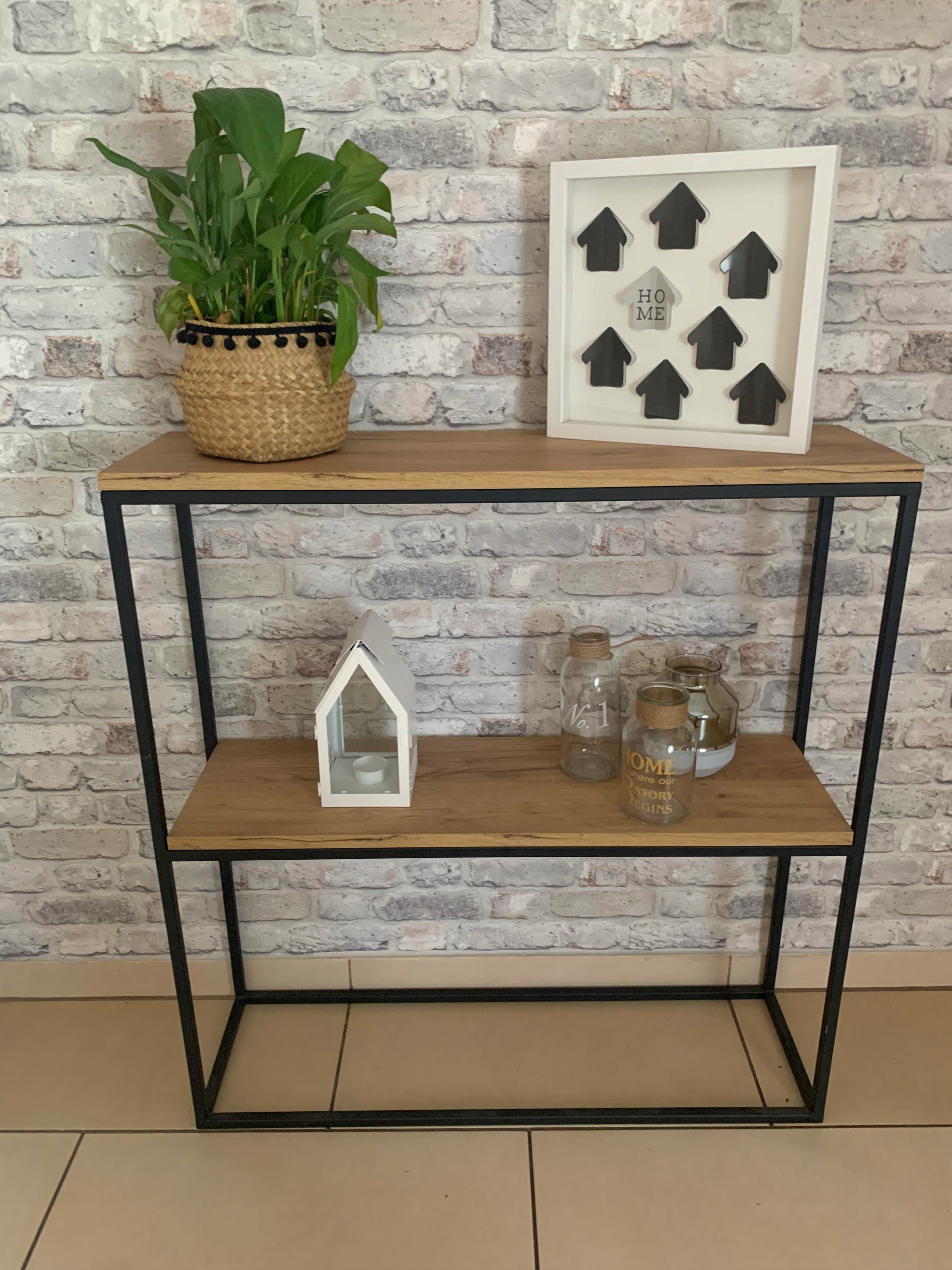 КОНСОЛЬ, ДЕКОРАТИВНАЯ ДЕРЕВЯННАЯ ИНДУСТРИАЛЬНЫЙ СТИЛЬ, ЛОФТ С ДОПОЛНИТЕЛЬНОЙ ПОЛКОЙ 70х25х90