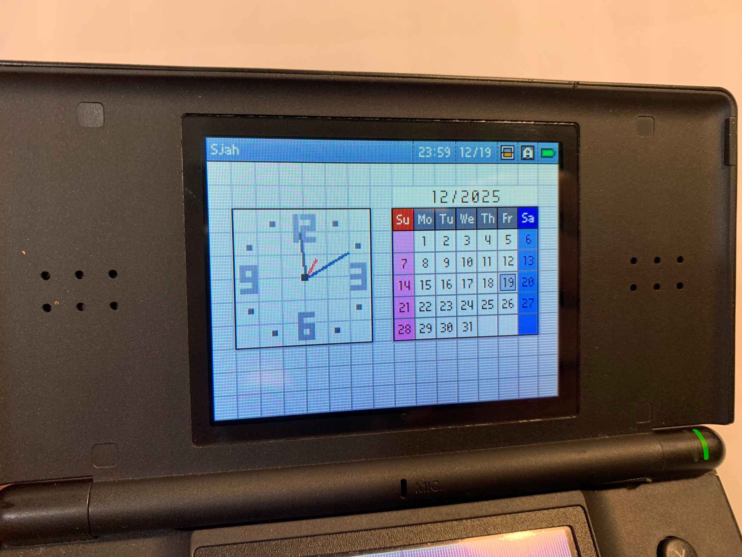 У консоли поврежден шарнир, верхний экран падает вниз и не держится вертикально. Нижний дисплей поврежден, на экране видны полосы и искажения, моргает нижняя часть. Звук в наушниках обрывается в зависимости от положения вилки в ВЧ гнезде. Аккумулятор на время работы не проверялся.