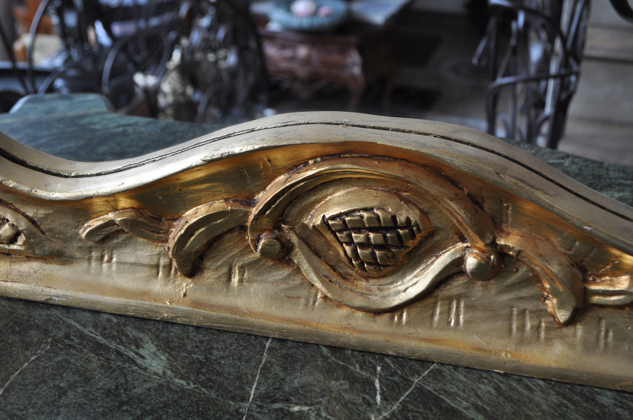 , украшен узор с открытыми классами на короне зеркала по бокам и на консоли. Дизайн.