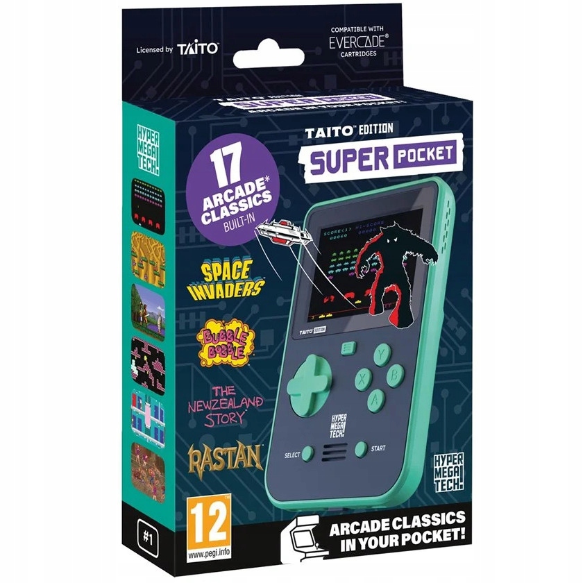 17 потрясающих аркадных игр, полностью лицензированных издателем классических аркадных игр Taito, включая Space Invaders, Bubble Bobble, Elevator Action, The New Zealand Story, Rastan и другие, а также поддержку картриджей Evercade, что делает ее лучшей аркадной игрой. компаньон по игре.