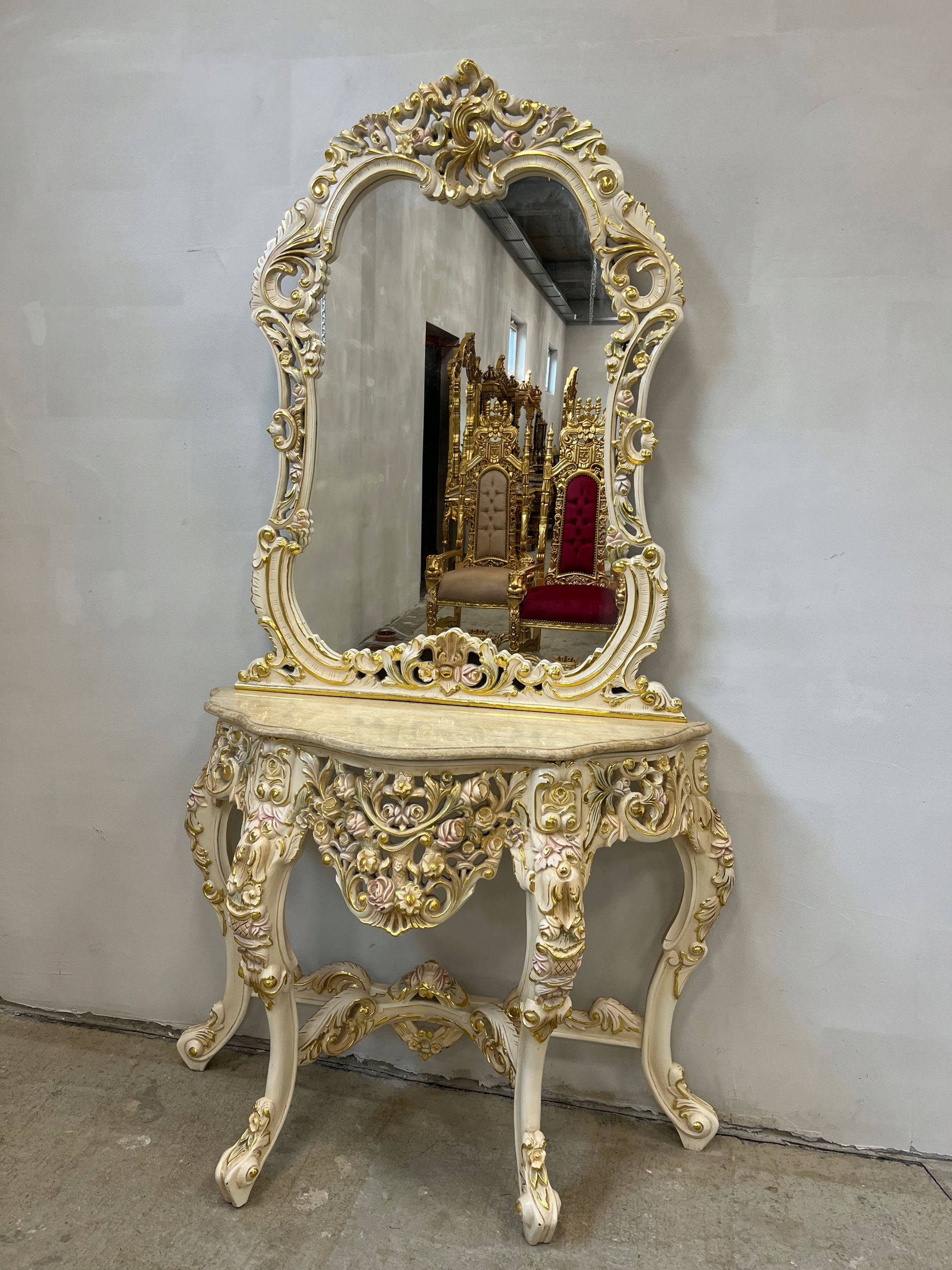 Консоль в стиле рококо с кремово-золотым зеркалом