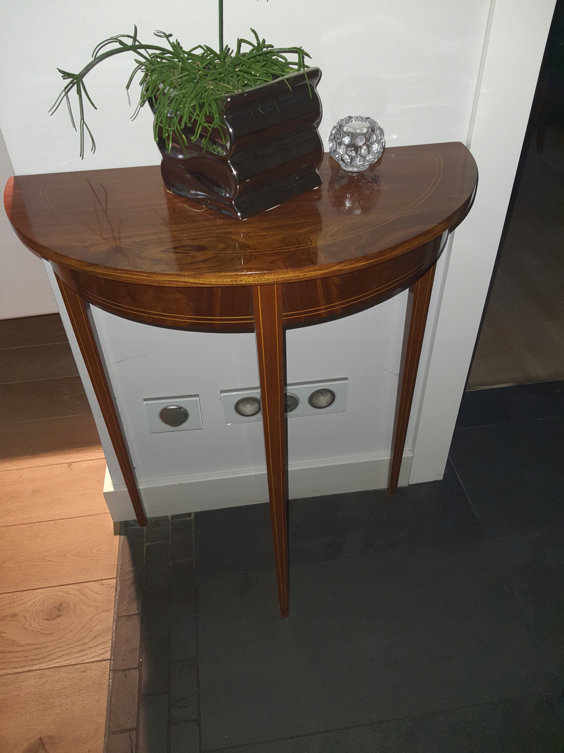 Консоль Demi Lune, то есть полумесяц, сжиманный с махоном и инкрустированная линией легкой рыбалки, поступает из Северной Германии примерно с 1825 года.