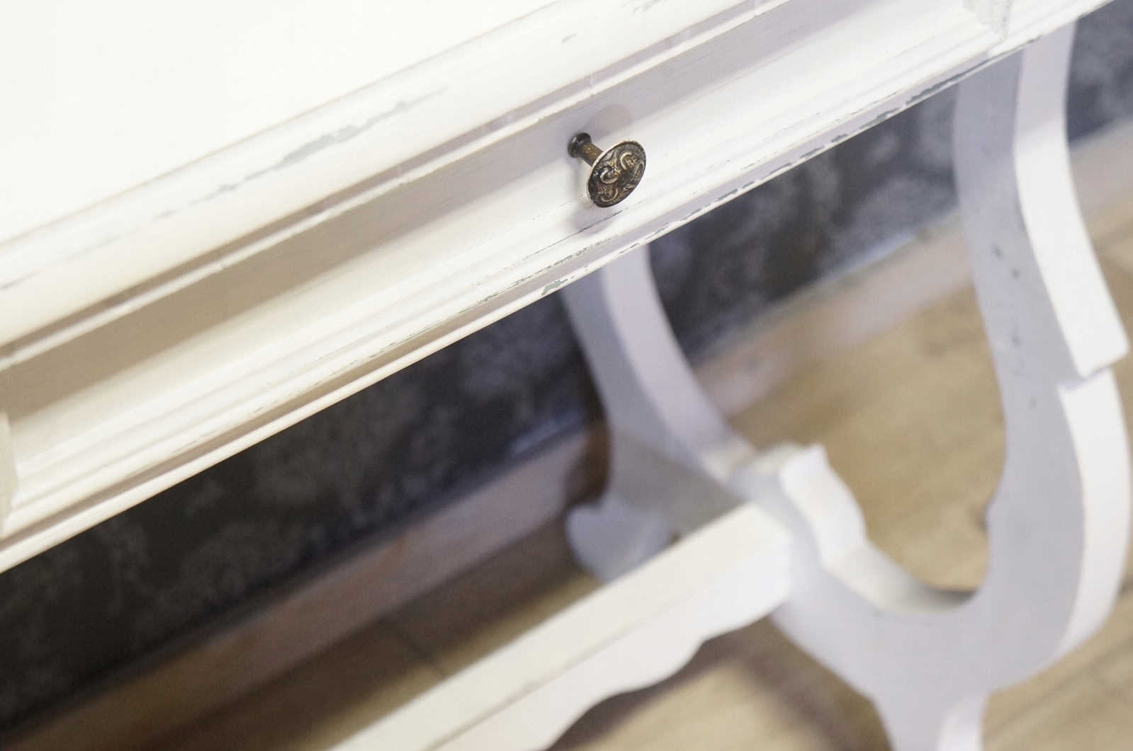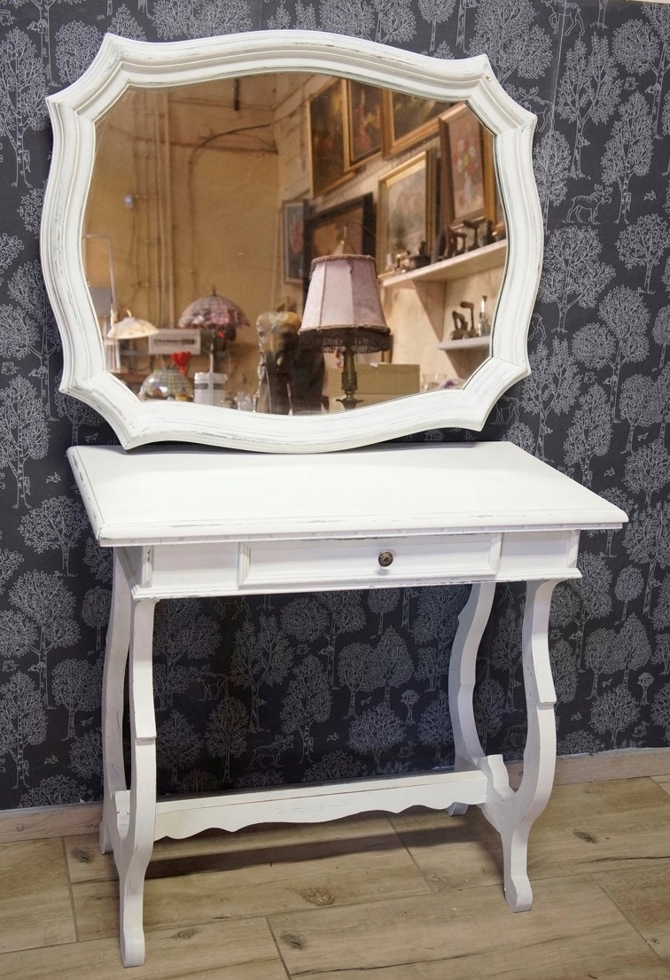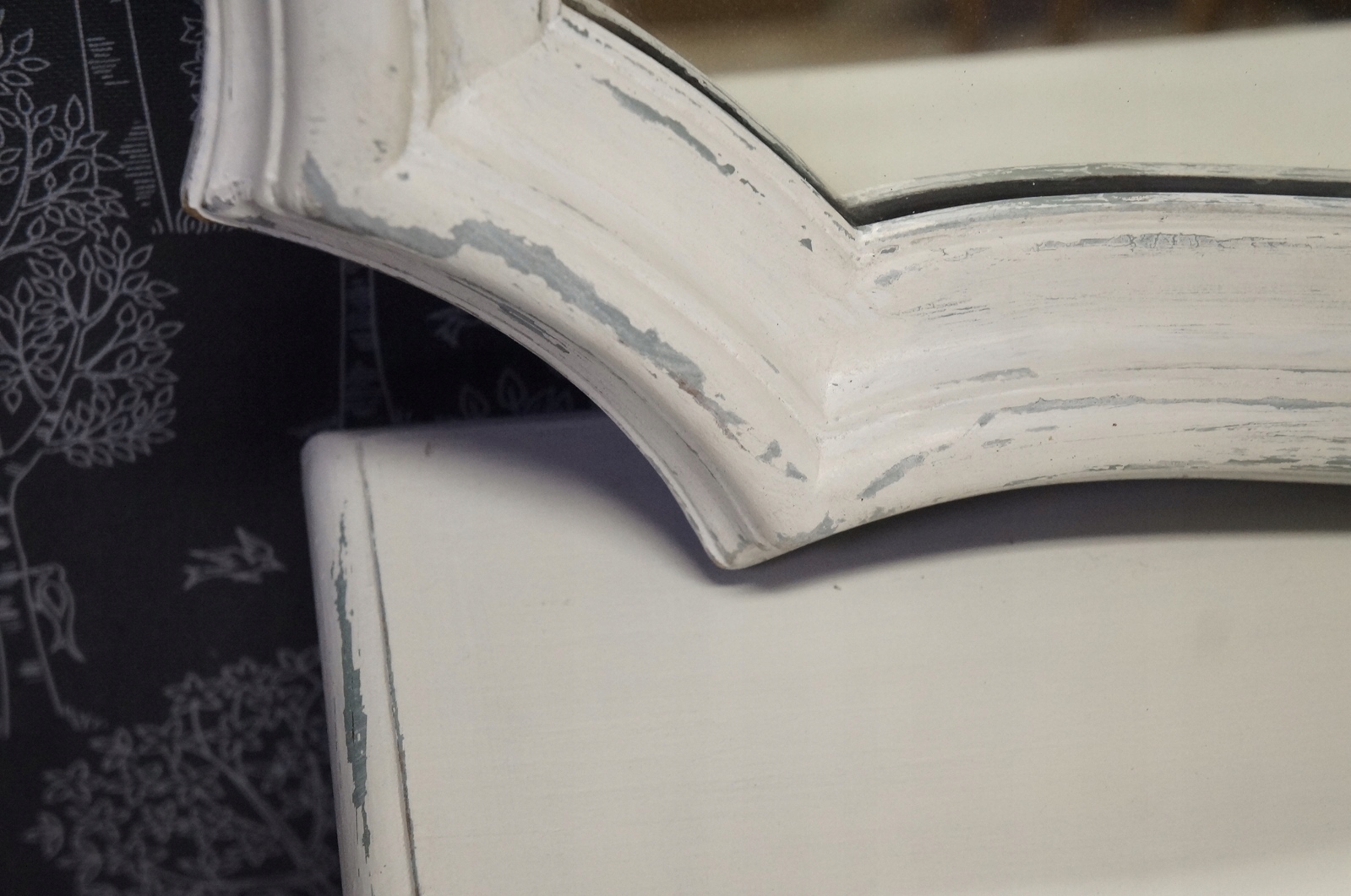 Консоль и рама зеркала из дерева, окрашенные и состаренные. - белый