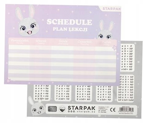 коллектив 25 штук. План урока является важным элементом школьного оборудования. План из коллекции СТАРПАК Кролик содержит разделение на пять дней недели с 8 строками для записи, чтобы ни один школьник не забудет о нужных ему в данный день книгах или тетрадях, а также имеет на обратной стороне таблицу умножения. Дружественная графика сделает каждый день в школе хорошо спланированным и успешным. Также ознакомьтесь с другими продуктами Starpak! План урока из бумаги. Сделано в Польше. Упакованы в фольгу по 25 штук. Размеры изделия (ширина х высота) [см]: 23х16. Вес товара в упаковке [кг]: 0,23 кг.
